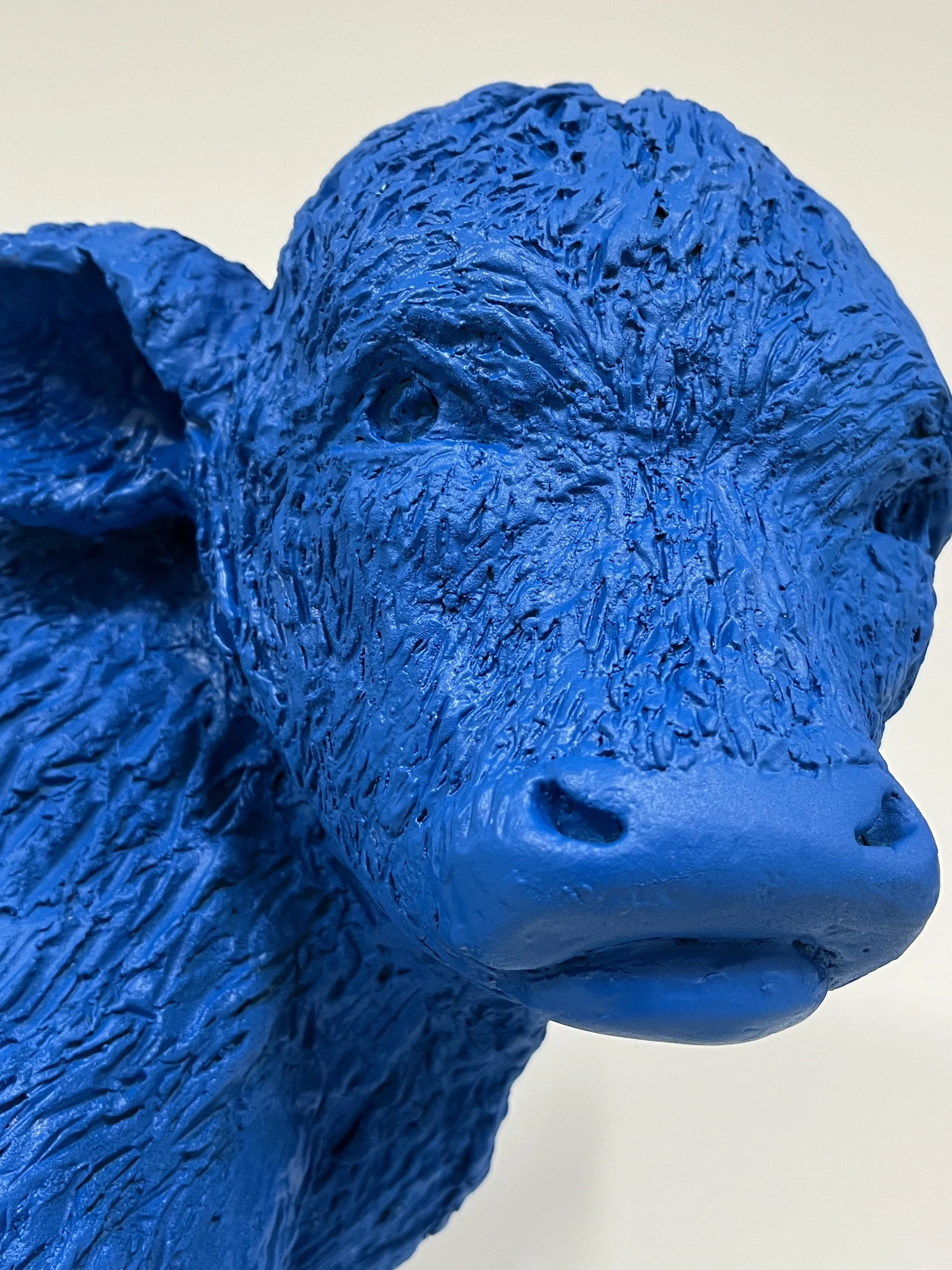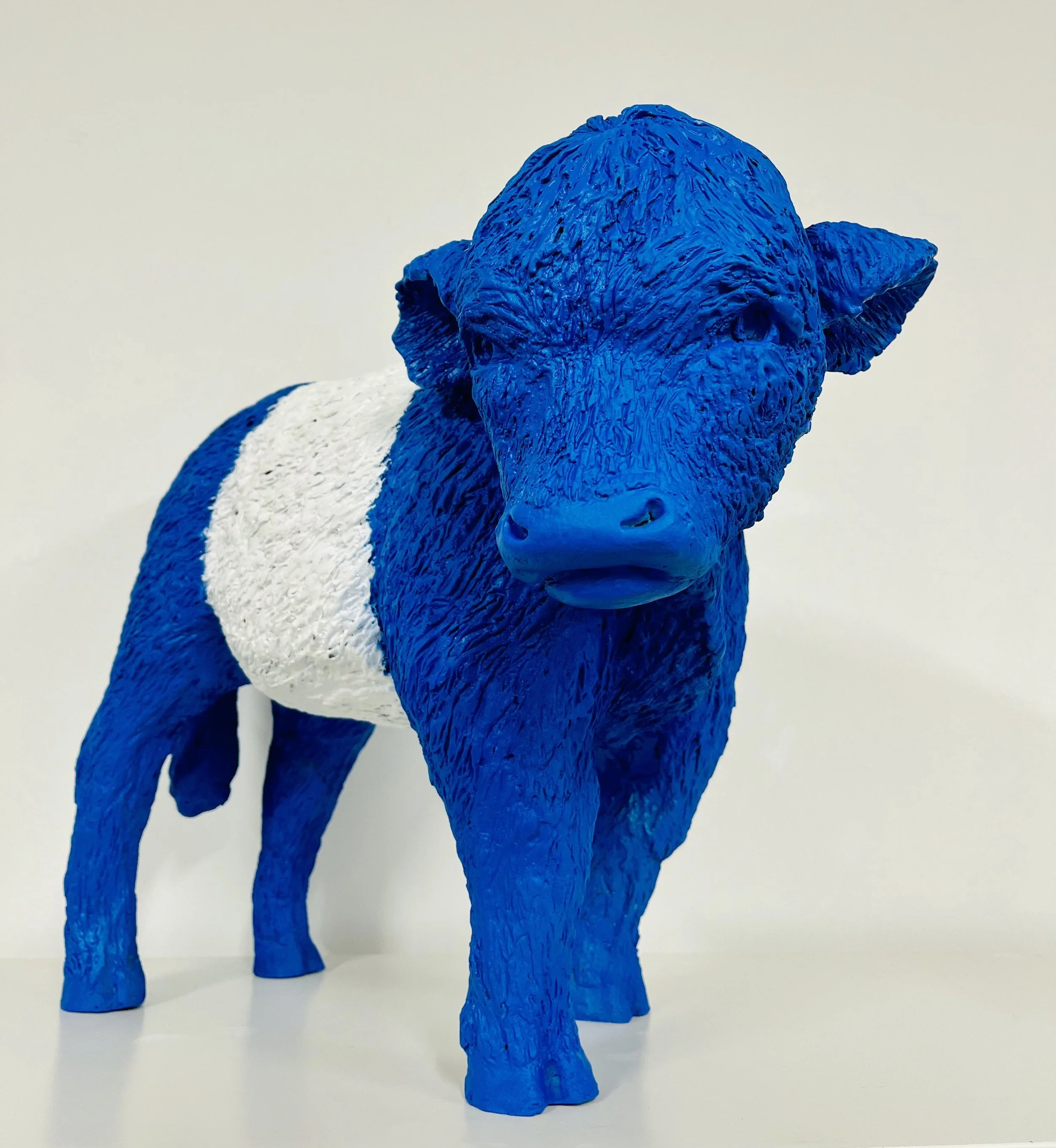 This small ‘Beltie’, sculpted at one-third life size, is cast in resin and finished in the colours of the Scottish flag. Bronze editions and alternative finishes are also available